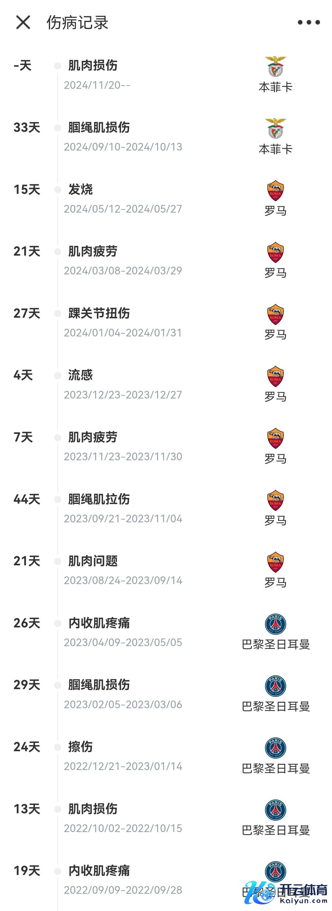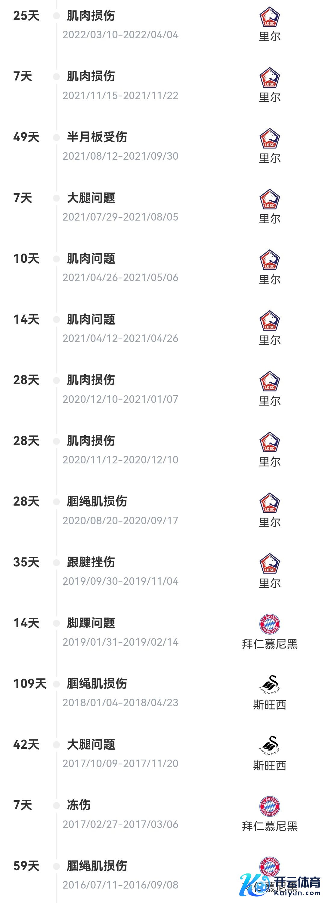 桑谢斯伤病纪录↓
