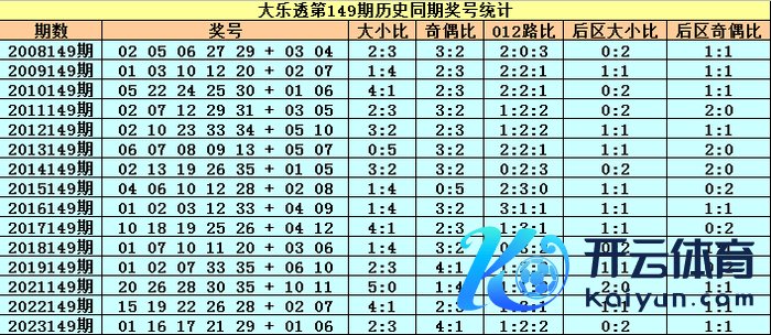 小王子大乐透第2024149期历史同时奖号属性分析: